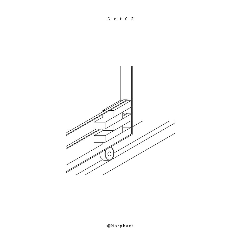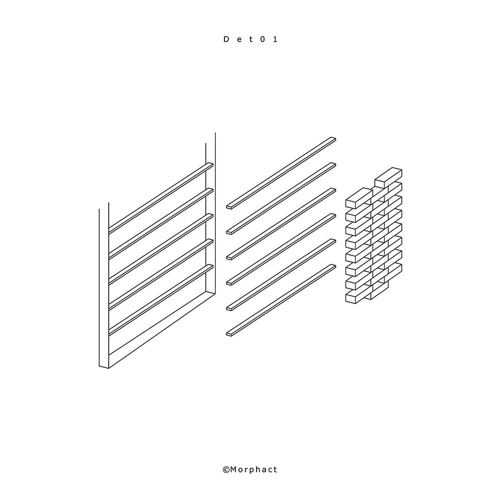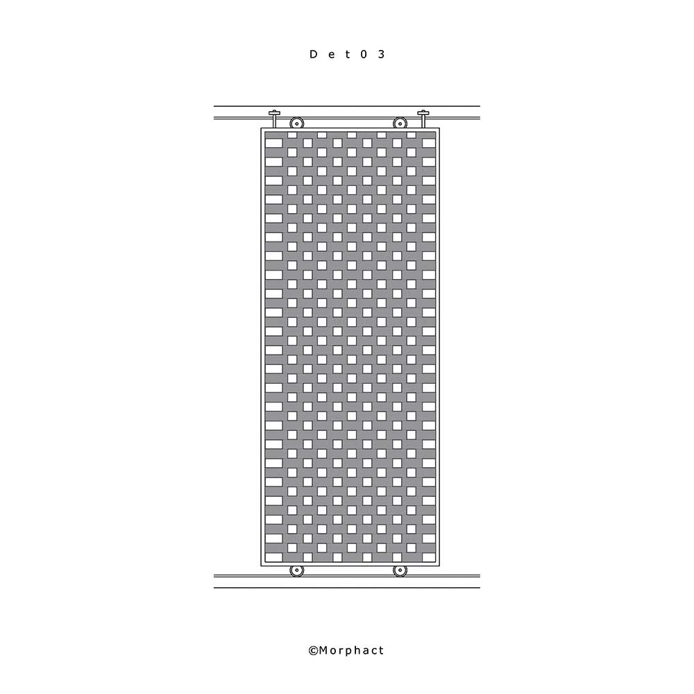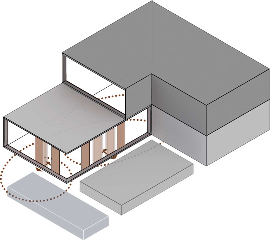 نوع قرار گرفتن بازشوها در این پروژه به صورتی‌ ست که می‌ توان دید و نور را با استفاده از مکانیزم متحرک بودن آن کنترل کرد و تمامی بازشوهایی که مشرف به فضای بیرون یا همان حیاط مرکزی می‌ باشند دارای مکانیزمی هستند که می‌ توان نسبت به قرارگیری آنها اندازه‌ بازشوها را تغییر داد. هر بازشو متشکل از چند چرخ و قرقره می‌ باشد که برای جابجایی می‌ توان آنها را در هر فاصله‌ ای به‌ راحتی حرکت داد. برای حفظ امنیت، ساختار فلزی مشبکی در دهانه‌ بازشوها قرار گرفته که با چیدمان آجر پوشیده شد. با حرکت این بازشوها می‌ توان فضای دید و ندید را به وجود آورد و کنترل کرد.