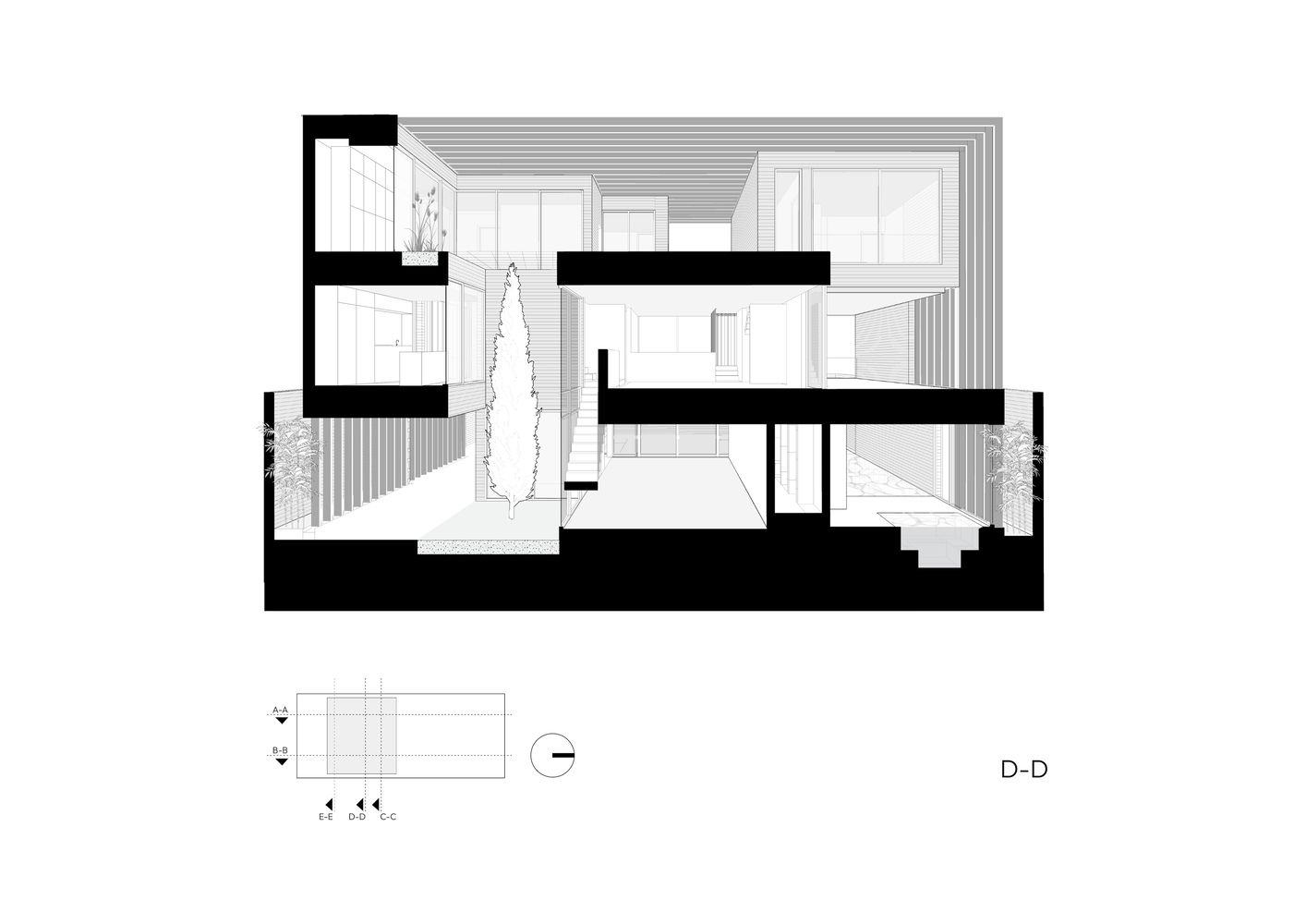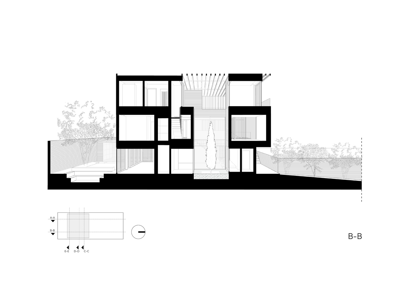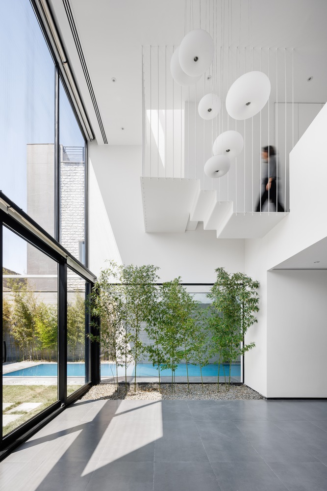 حیاط ها که در امتداد محور شمال-جنوب قرار گرفته اند، همزمان نور جنوب و مناظر شمالی را به داخل ساختمان جذب می کنند و در عین حال در پاسخ مستقیم به توالی روایی و برنامه ریزی شده فضای داخلی قرار گرفته اند.