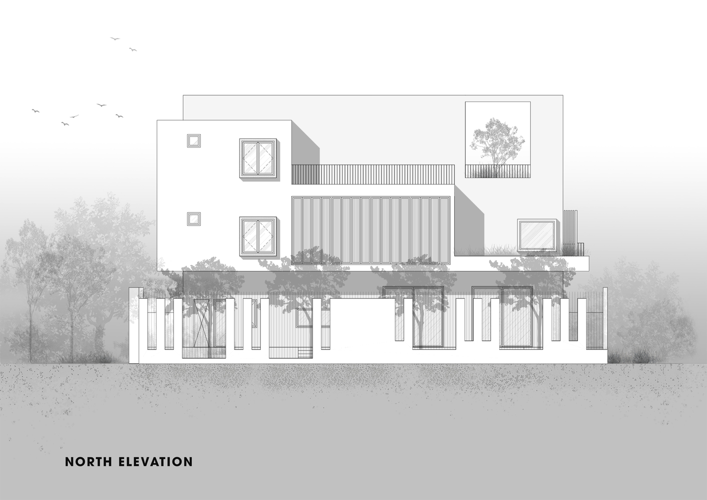 نورگیرها و نورگیرهای پله ها به گونه ای هوشمندانه چیده شده اند که اتاق خواب ها دیوارهای مشترکی نداشته باشند تا برای هر فردی حریم خصوصی ایجاد کنند بلکه ارتباطی بین طبقات خانه ایجاد کنند. معماری به اندازه کافی، فضایی به اندازه کافی که از تراکم و تو خالی در معماری برای ایجاد تعادل بین فضا و شکل استفاده می کند.