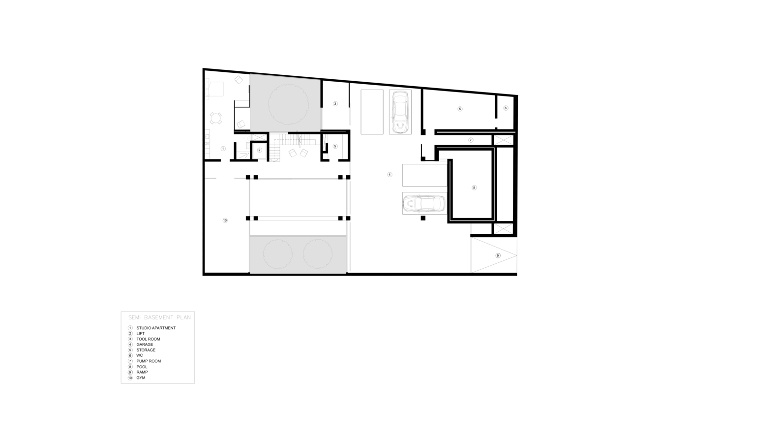 این طراحی بدین معنی است که از طریق آن می توان اهمیت عوامل طبیعی مانند ایجاد فضاهای جذاب با استفاده از نور و سایه را بررسی کرد: کانسپتی که یادآور دوره رنسانس و تکنیک “کیاروسکورو” بود. در طبقه همکف، فضای داخلی  غرق در نور طبیعی بود. نور طبیعی در هر ۴ سطح خانه از طریق دو حیاط که به علاوه هوای محیط را مطبوع می سازد، نفوذ می کند.