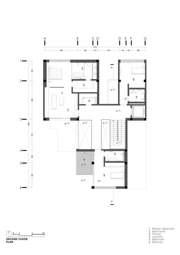 هر سطح از ویلا هدف خاصی را دنبال می کند: طبقه همکف دارای لابی ورودی، پارکینگ، سوئیت مهمان، دسترسی به حیاط و یک استخر روباز است. طبقه اول میزبان مناطق مشترکی مانند آشپزخانه پشتی خانه (BOH) و جلوی خانه (FOH) و همچنین اتاق نشیمن است. طبقه دوم به فضاهای خصوصی اختصاص داده شده است که دارای اتاق خواب هایی است که با یک راهرو با مناظر خیره کننده متصل می شوند. پشت بام یک آلاچیق و منطقه باربیکیو با منظره پانوراما در همه جهات ارائه می دهد.