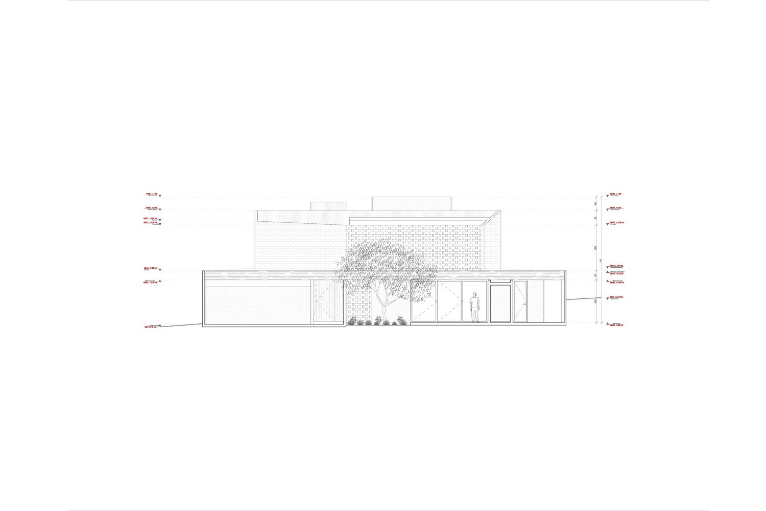 همانطور که در تصاویر این پروژه دیده می شود، در جلد نهایی، آجر بخش بزرگی از پوشش را باز می کند، از جمله توسعه مشبک به عنوان فیلتر نور و حریم خصوصی، و همچنین نقش برجسته های هندسی برای برجسته کردن نور و سایه. بنابراین می توان گفت این متریال در در تفکیک فضا های داخلی به عنوان پوشش حریم خصوصی در عین حفظ ارتباط با بیرون و عبور نور نیز مورد توجه قرار دارد.