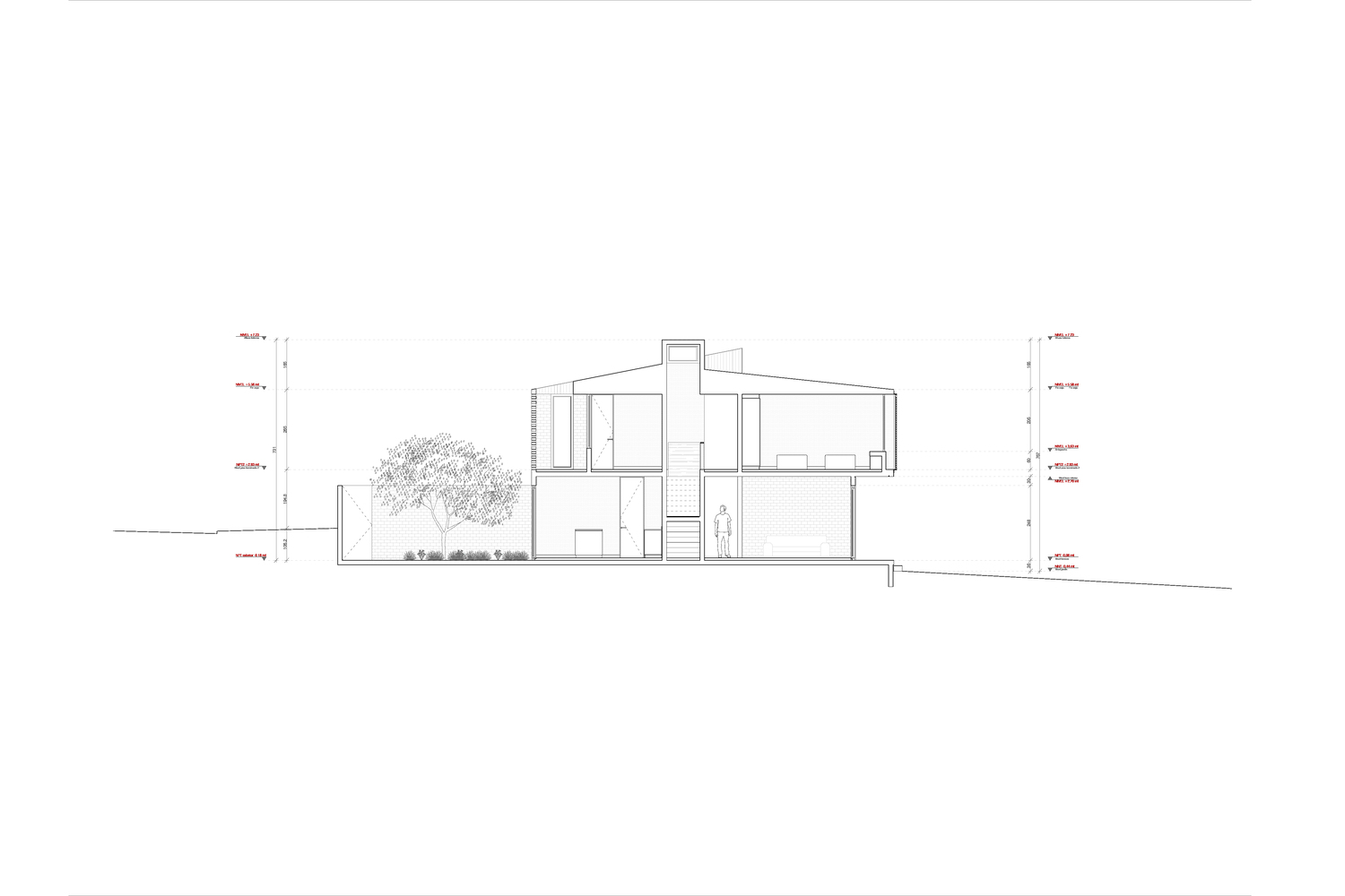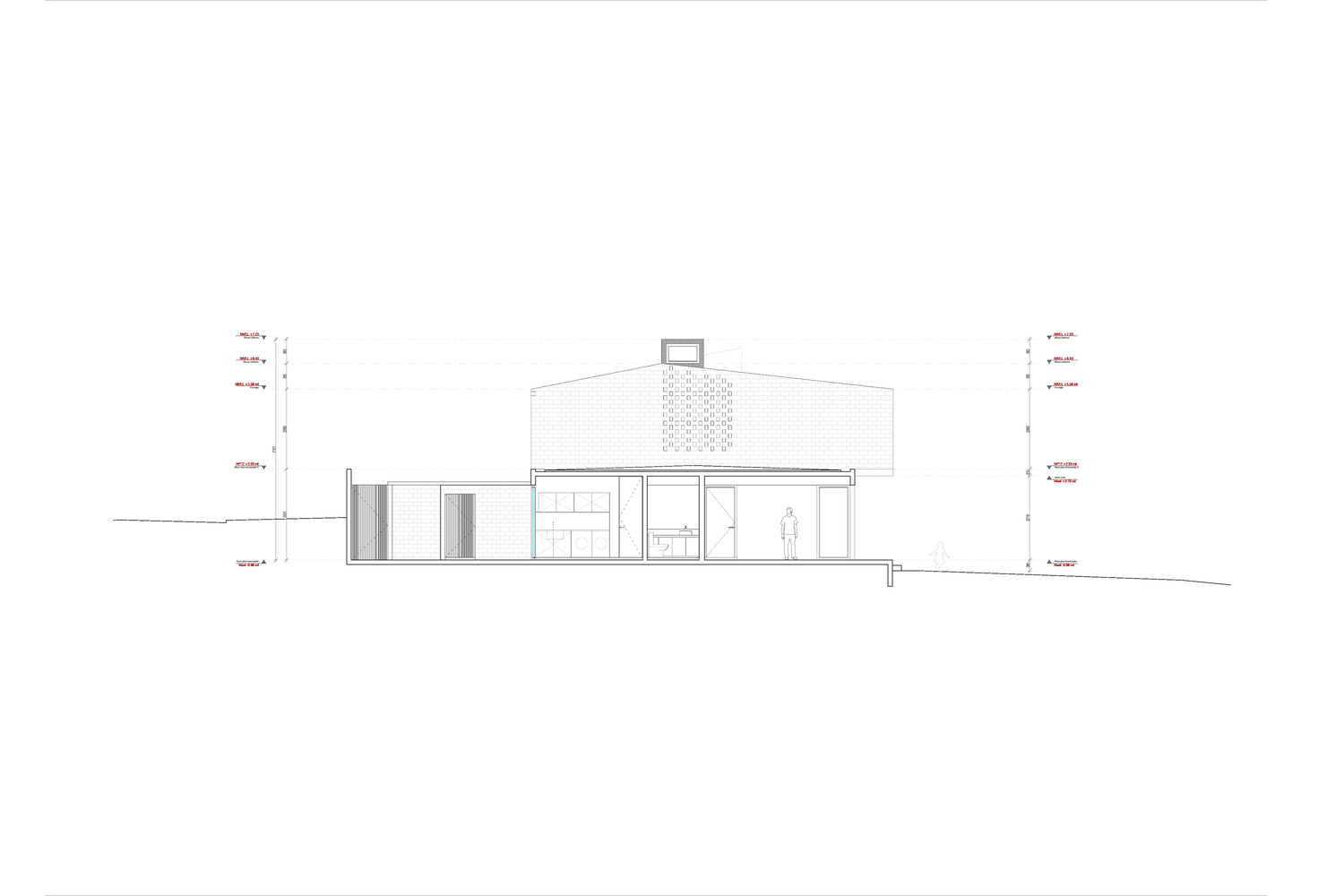 نمای آجری در ساختمان ویلایی این خانه خاص، استفاده از متریال، ترجمه مستقیم زبان معماری شی بوده است. استفاده از آجر به عنوان ماده غالب تصمیم اولیه ای بوده که پروژه را در طول توسعه آن آگاه کرده است. آجر دست ساز به دلیل بیان تکتونیکی، رنگ و امکانات سازنده آن در این پروژه انتخاب شده است.