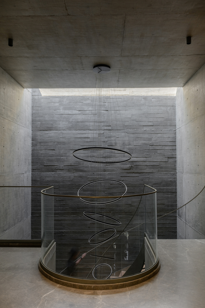 مادیت در روایت طراحی نقش محوری داشت. مشتری علاقه ی آشکاری به بتن اکسپوز داشت، میلی که ریشه در تحسین سادگی و خلوص ساختاری داشت. طراح این دیدگاه را پذیرفت و آن را از طریق هنر و دقت ارتقا داد. نماهای بتنی یکپارچه به عنوان بیانیههای مجسمهسازی ظاهر میشوند، خامی آنها تداعی کننده ی پایداری و قدرت است. با این حال، این ژست بروتالیسم با ظرافت لمسی چوب طبیعی تعدیل شده است – که از طریق طاق نماها، مبلمان و جزئیات پیچیده به کار رفته است و به فضای داخلی حس گرما و عمق حسی می بخشد.