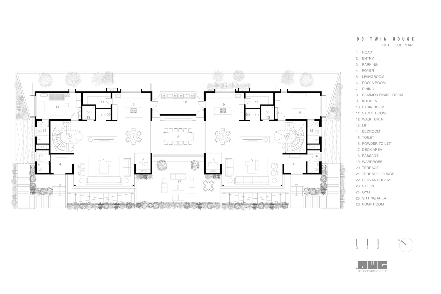 در اصل، خانه دوقلو، تفسیری معاصر از زندگی خانوادگی هندی است – تفسیری که به سنت احترام می گذارد و در عین حال مدرنیته را در آغوش می گیرد. این پروژه پاسخی معماری به ارزش های اجتماعی در حال تغییر است، جایی که خانواده ها به دنبال ارتباط و استقلال هستند و بیان مادی صرفاً تزئینی نیست، بلکه عمیقاً در تجربه و عملکرد ریشه دارد. گروه کاری طراحی از طریق خانه دوقلو، زبانی معماری را پیشنهاد می کند که همزمان محلی و جهانی است – ریشه در فرهنگ مادی، هوش فضایی و طنین عاطفی دارد. این خانه ای است که با ساکنانش رشد می کند، با ریتم های آنها سازگار می شود و پیوندهای پایداری را که افراد را به هم پیوند می دهد – آرام، زیبا و با پیچیدگی بی زمان – منعکس می کند.