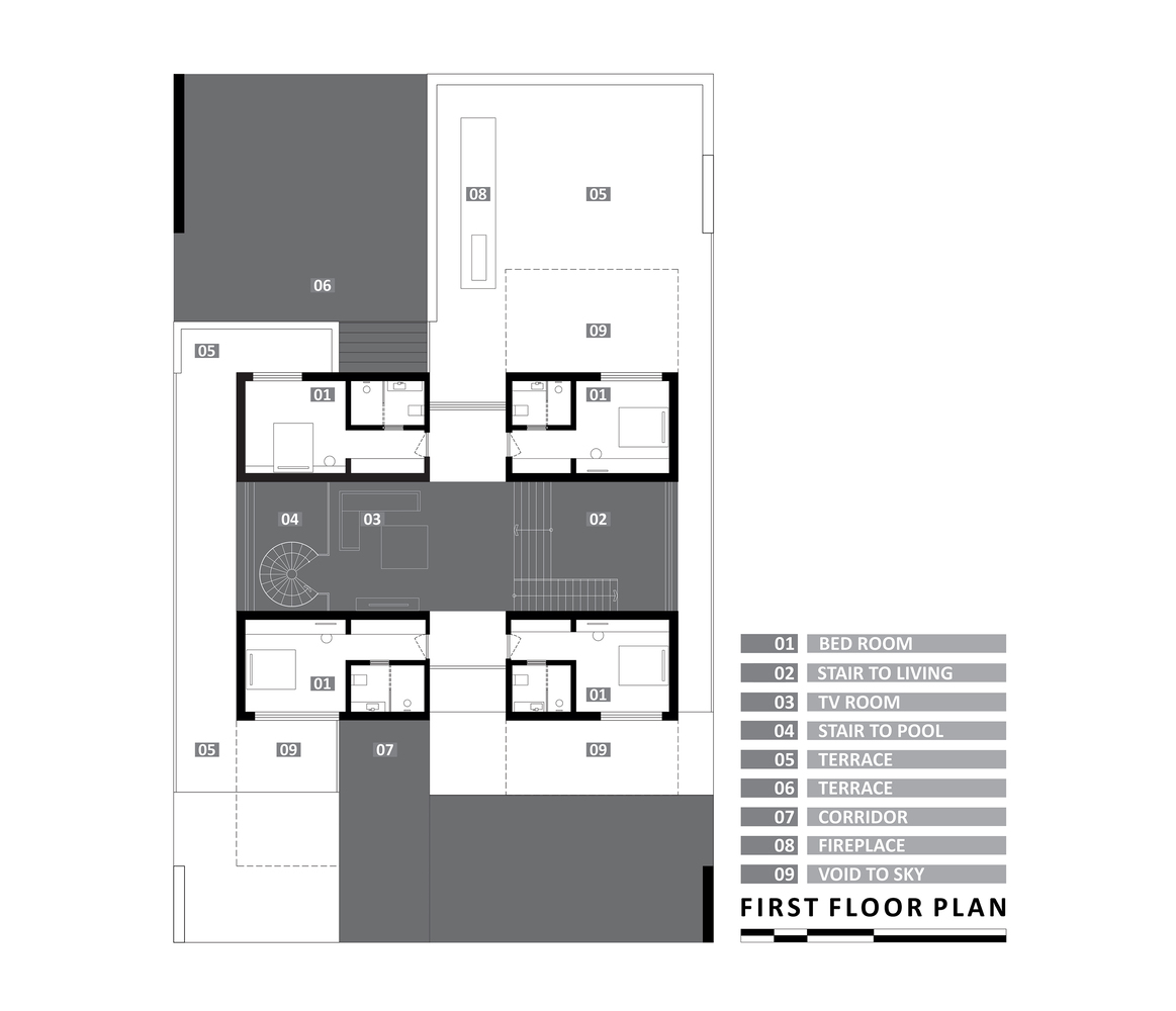 مکان یابی فضاها یکی از دلایل اصلی و مهم ایجاد چنین خلأهایی است که سعی در محو شدن فاصله بین داخل و خارج و تبدیل طبیعت و تغییرات فصلی به تجربه ای دیدنی از یک ساختمان دارد. در شماره ۷۵-VILLA فضاهای خالی با تفریق در فرم، خوشه های عملکردی را فوق العاده تقویت کرده و زمینه را برای انجام فعالیت های عملی با عناوین مختلف ورودی، نبشی، بالکن، هشتی و حیاط ایجاد می کند. فضاها در چندین سطح در این ویلا به هم متصل شده اند. گسترش دهانه در سقف و امتداد آن به طبقات زیرین و تأثیر آنها در ایجاد فضاهای موازی با یکدیگر و قاب هایی که جهت دید را تغییر می دهند، تجربه ای از آینده و لحظات متفاوت را در پی خواهد داشت.