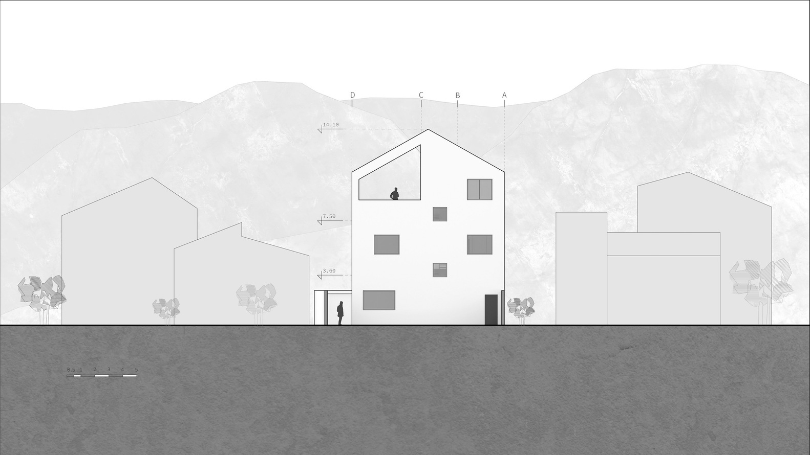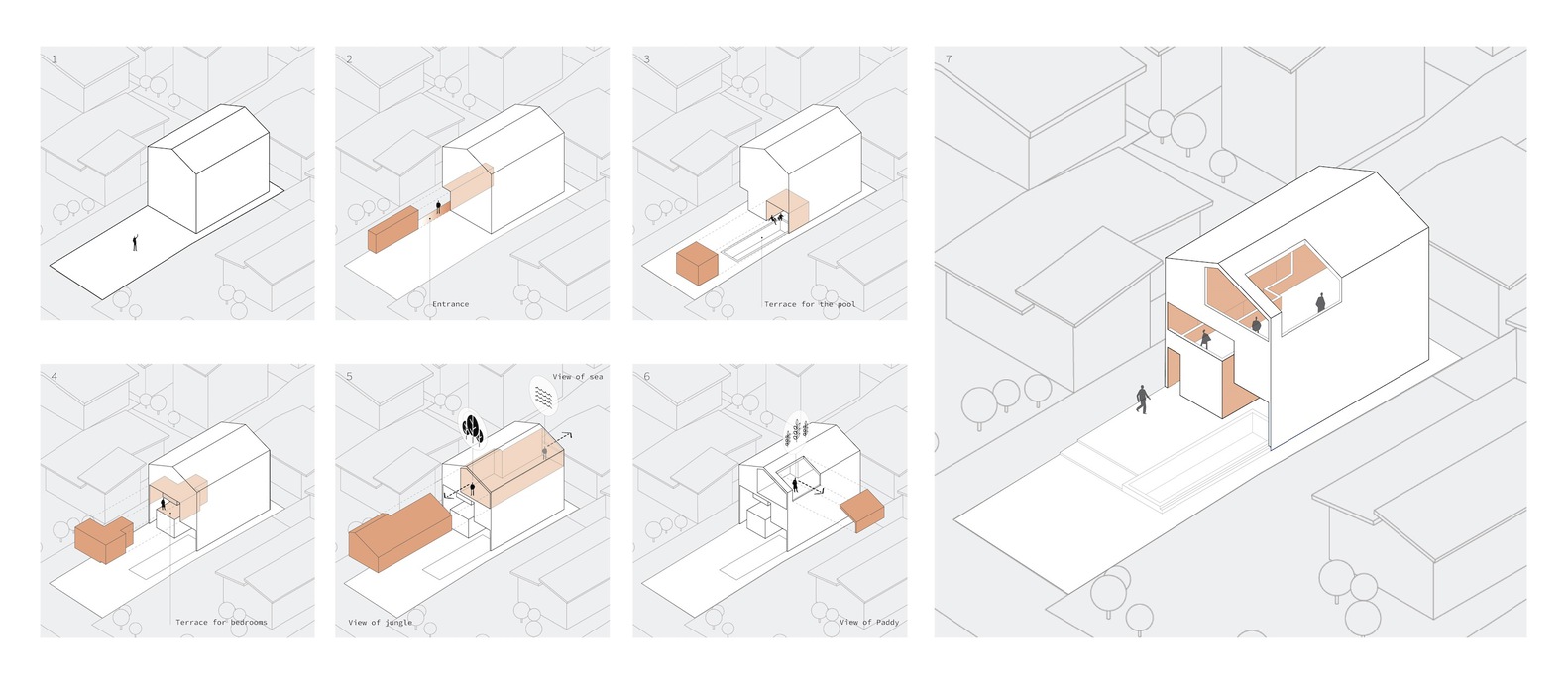 پروژه در ایران و در ۱۳ کیلومتری شرق شهرستان نوشهر، روستای دزدک بین خط ساحلی دریای خزر و جنگل های شمالی رشته کوه البرز واقع شده است. این ساختمان در زمینی به ابعاد ۴۰*۱۲ متر با امتداد شمالی – جنوبی در منطقه ای با چشم انداز بی نظیر واقع شده است. از سمت جنوب کوه ها و جنگل های نوشهر دیده می شود. از طبقه بالای ساختمان در شمال، دریا دیده می شود. به علاوه، در شرق، شالیزارهای برنج عجیب نیز قابل مشاهده است. اکثر ساختمان های این منطقه بالاتر از سازه های یک یا دو طبقه با سقف های شیروانی کلاسیک نیستند. ویژگی اصلی این خانه، دید حداکثری در عین استفاده از تمام پتانسیل آن است. از آنجایی که این سایت دارای گونه شناسی برجسته است، خانه اشکال رایج موجود را بدون تغییر و در عین حال رعایت محدوده ارتفاعی محله برای دستیابی به همگنی با بافت اطراف خود در خود جای می دهد. در این پروژه با حفظ چارچوب اصلی فرم، کارکردهای مختلف ساختمان مرتب شده است.