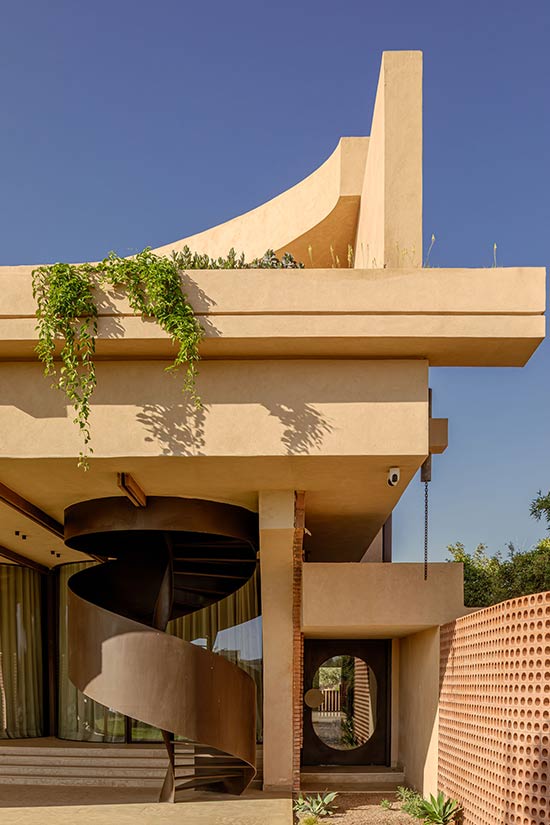 در حاشیه یک زمین گلف در مراکش، در زمینی به مساحت ۱۴۰۰ متر مربع، ویلایی قرار دارد که همچون حضوری خاموش، همزمان زمینی و بی وزن، حسی و معنوی، تصور می شود. این پروژه طراحی ویلا ریشه در چشم انداز اخرایی شهر دارد و از مادیت و نور آن، نجابت خام و بی تکلفی را به تصویر می کشد.